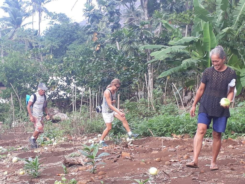 Traversée de l’île à pied avec Odile et Jean Paul , qui naviguent sur un voilier de 9m, un Sun Fast 32, plutôt fait pour la régate ou la croisière rapide, respect ! en montagne aussi ces Grenoblois assurent car cette traversée pour Hanatetena est déconseillée par les locaux « trop raide , trop long »