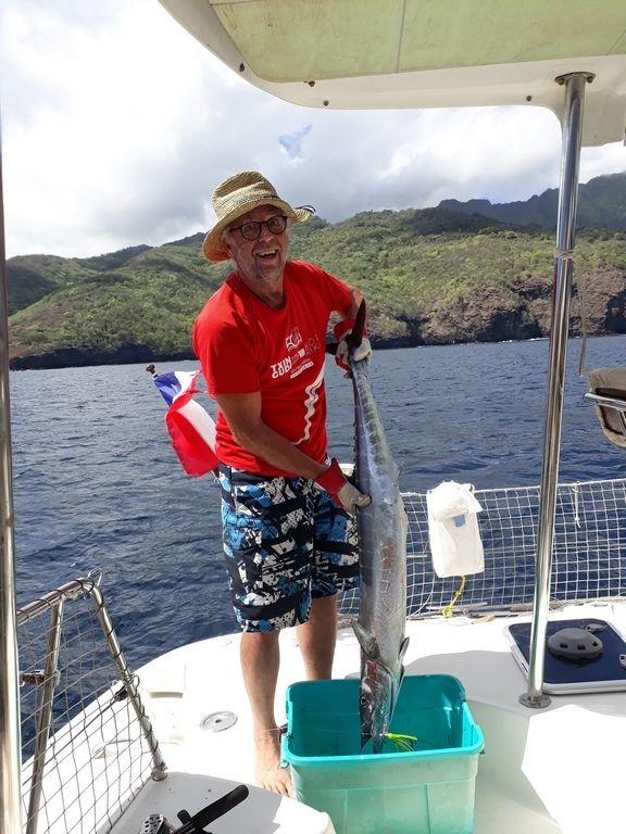 Un bel échange ; Jean-Baptiste aide Alain à bricoler et nous on est pour lui un bateau « ami » après 30 jours de traversée en solitaire depuis Panama, ça lui plait. Un bricoleur minutieux qui a besoin d’échanges, d'amitié et de bons repas. Nikel. J’ai fait ma part, je peux aller marcher et retrouver les Marquises..