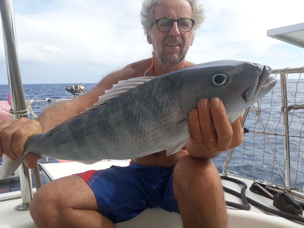 il n’y a pas de mouches en traversée, mais le temps est pluvieux, on met un pied dans le plateau ou elles commencent à moisir alors on les met dans le rhum, pour tester un sauvetage de dernière minute. Elles partent aussi en gâteaux, et dans de l’huile de coco. Fini les bananes au citron ou flambées au rhum ; il faudra attendre Tahiti !