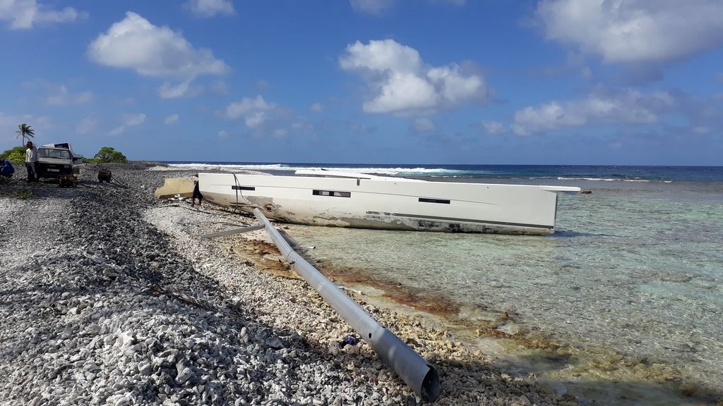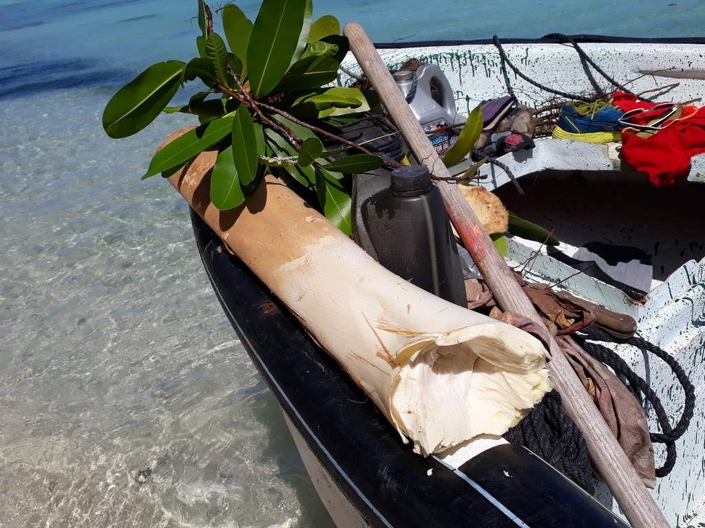 Encore une belle rencontre. Abela a participé au « sauvetage » pour sortir le catamaran en alu d’Antoine, posé sur une patate de corail ; il a fallu attendre que la marée monte et plusieurs speed boats pour le sortir de là, raconte-t- il.