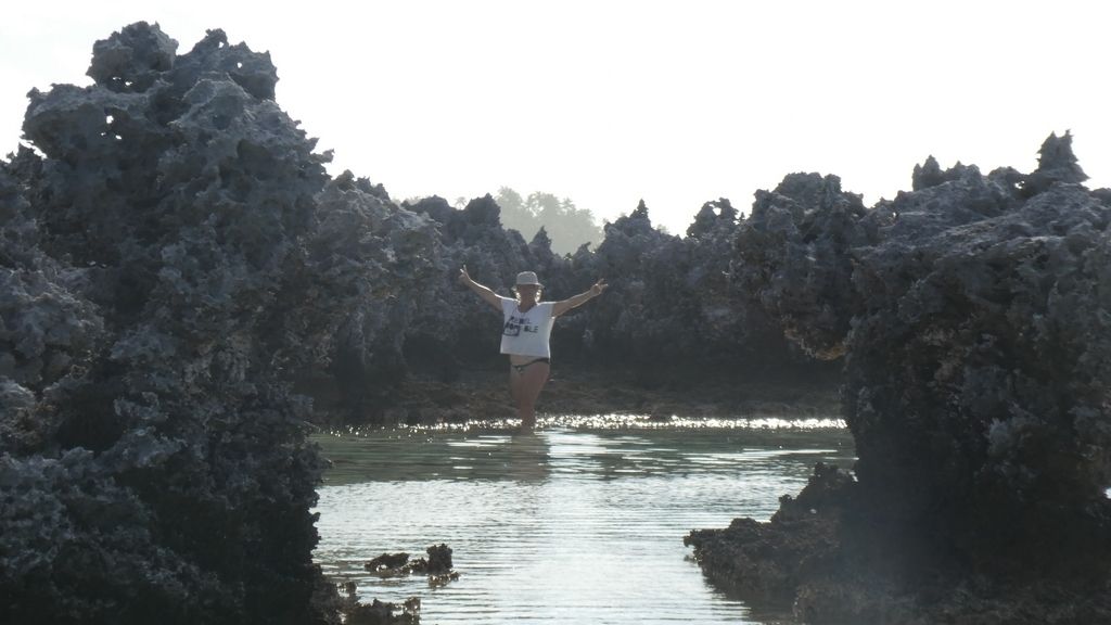 C’est magique ; cette fois ci on demande à un couple de Sud-Africains sur un autre bateau s’ils veulent la faire avec nous ; ils sont prudents, prennent la VHF, un bâton pour les requins ; ils l’ont faite la veille et nous donnent plein de conseils !