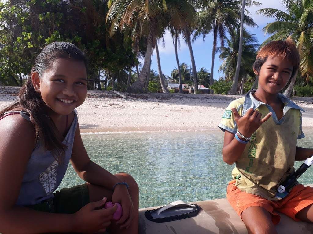 Tevai et Tagi viennent avec nous pêcher, adorables ; elle me montre comment décrocher les bénitiers que nous mangerons avec du citron.