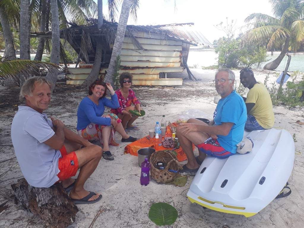 Nouvelle excursion aux langoustes, barbecue de poissons sur les motus peuplés par les coprah-culteurs a certaines périodes.