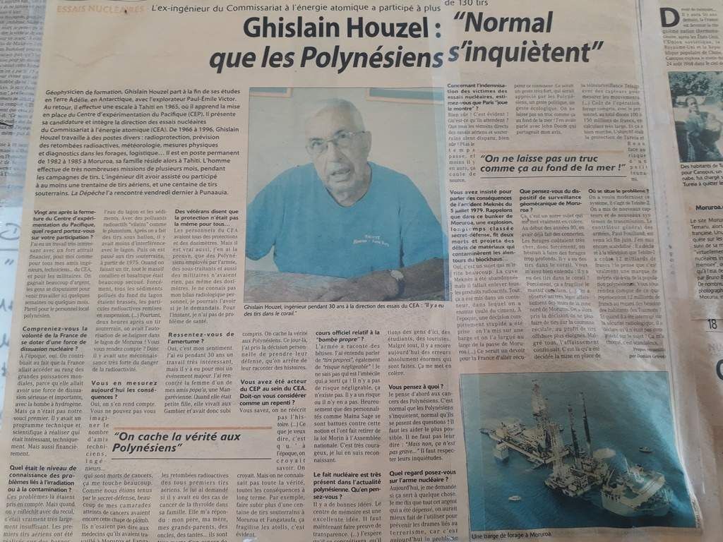 géo-physicien a participé à ces tirs. Il dénonce aujourd’hui la loi du silence et milite pour la reconnaissance des dommages sanitaires. La loi Morin, votée en 2010, définit les 21 cancers radio induits pouvant être dus à ces tirs ; Des milliers de personnes sont malades ou décédés de ces maladies dans les 5 archipels, sans aide financière ou reconnaissance (cancer de la thyroïde, digestifs, leucémies…)